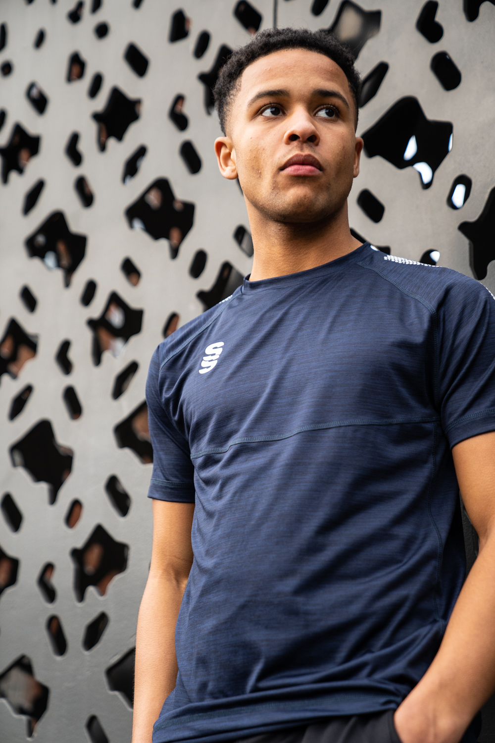 The Dual Gym T-shirt is made of high performance polyester marl fabric, with a contoured underarm side panel in breathable interlock fabric. The crew neck collar is made with modern flatlock stitching. It comes with an option for contrast colour 'dual' graphic print on both shoulders and choice of Surridge SS Logo situated on the right chest. It's super stretchy and is a regular fit, but can be worn one size down for extra fitting around a more athletic build.