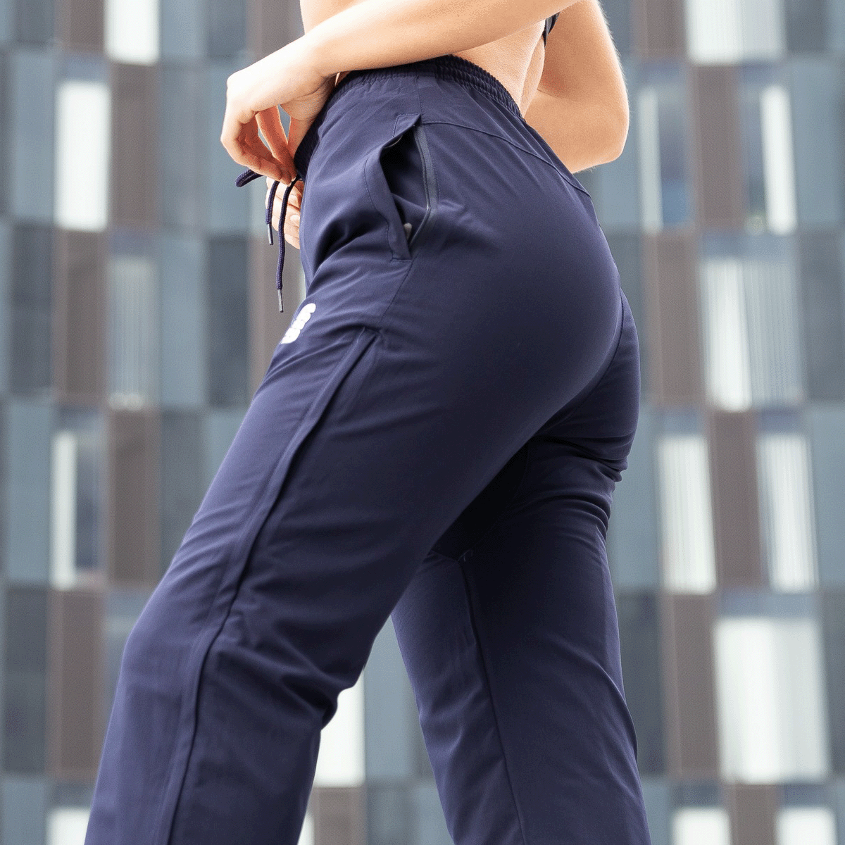 Straight leg trousers with 3/4 length side zip. 2 zipepd pockets and cotton feel lining.